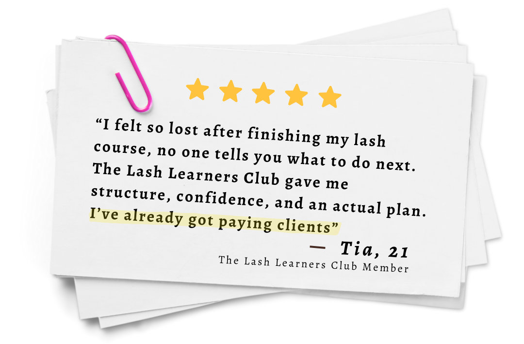 Inside the Lash Learners Club, you’re given everything you need to go from figuring it out alone to fully booked… fast!